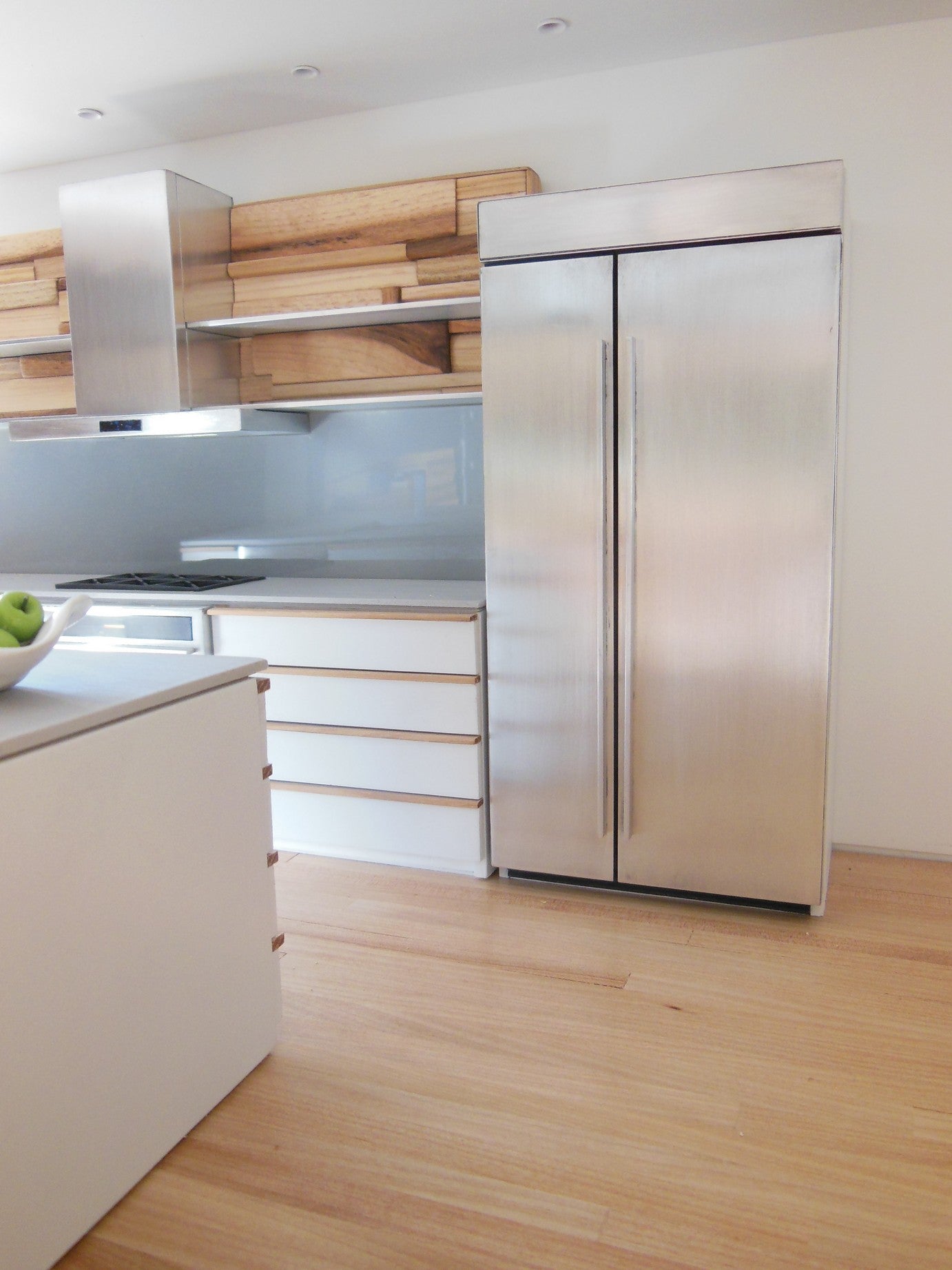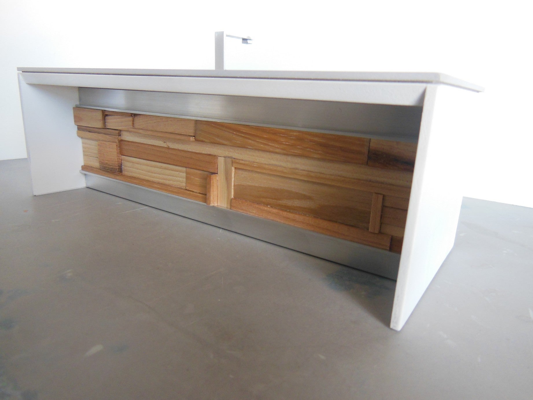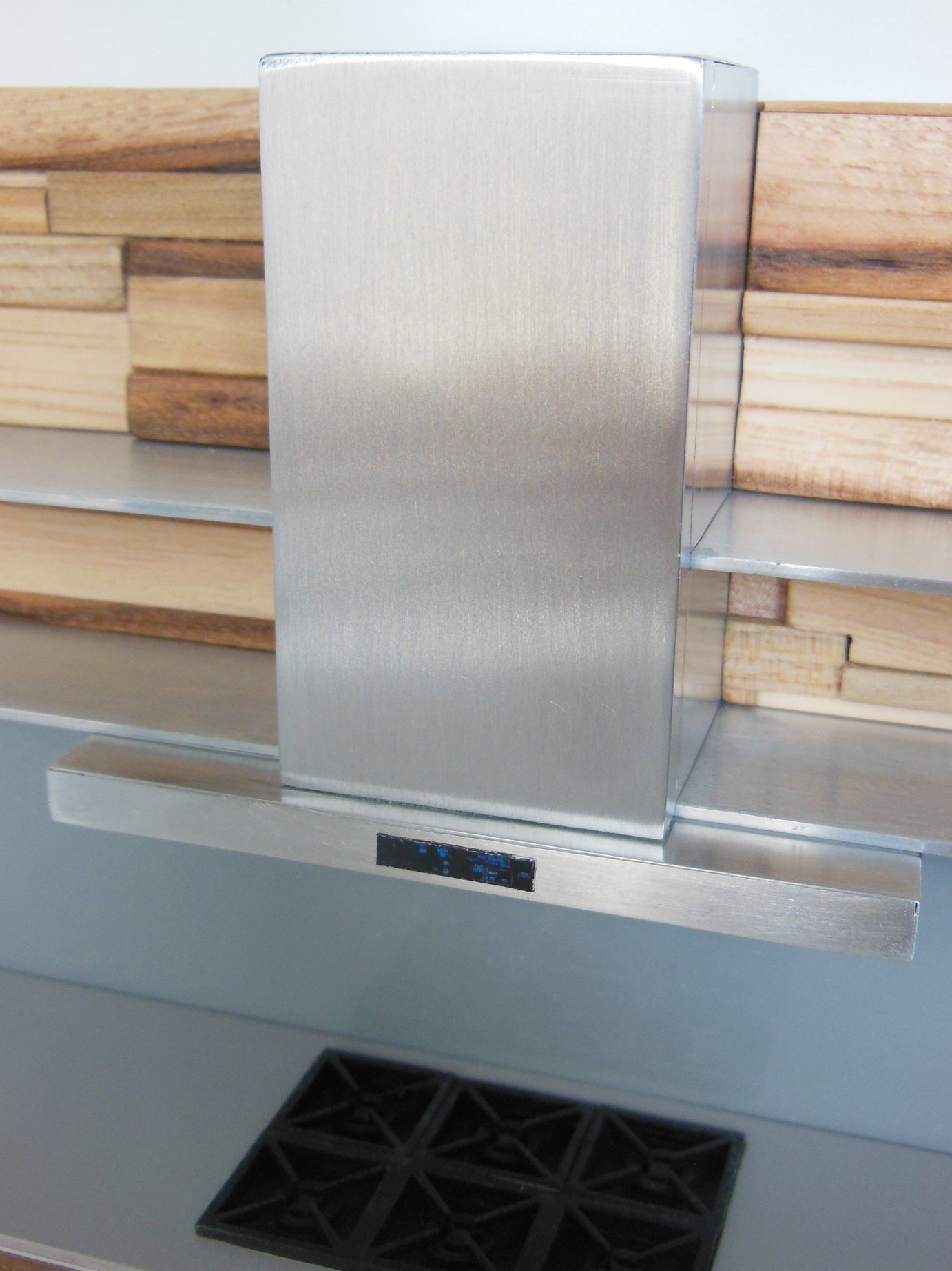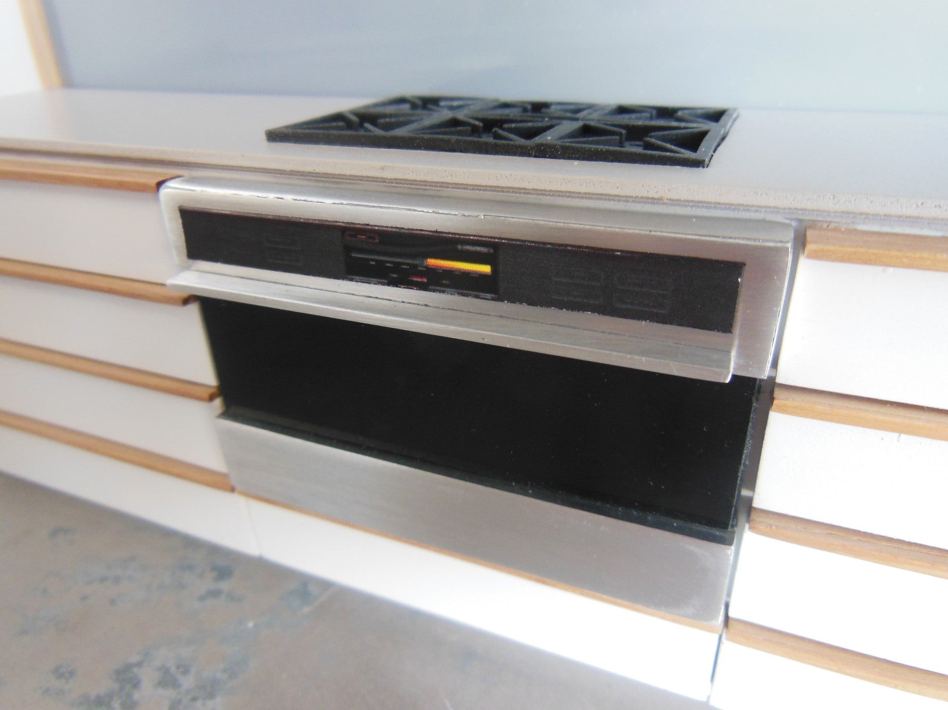 The Ripley Kitchen adds a touch of rustic to a modern kitchen setup. From the concrete countertops to stainless steel appliances, each element compliments the unique wood patchwork that is above the backsplash and under the island front. The backsplash is a gloss gray color, the drawer fronts are white with wood handles, and the upper shelves on the back wall are stainless steel. The refrigerator is freestanding and can be placed anywhere. NOTE: The drawers, cabinets, and appliances DO NOT open. The wood and pattern is unique and will vary on every piece. The backwall dimensions are: 9.65 in Length x 2.5 in Wide x 7.85 in Tall (Fridge dims not included). The island dimensions are: 9 in Length x 3.75 in Wide x 3 in Tall. The refrigerator dimensions are: 3.5 in Length x 2.45 in Wide x 7 in Tall. If you need a different size or configuration for any of our kitchens, please Contact Us.