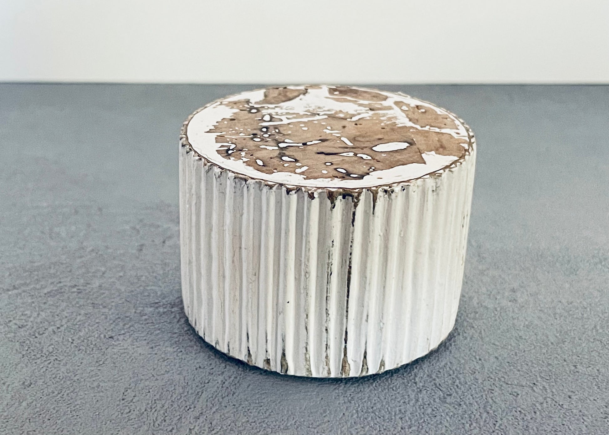 The Ripplin Accent Side Table gives off coastal beach vibes with a round ribbed base finished in a distressed plaster white with a natural driftwood and plaster top. Can also be used as a coffee table. Each table top is unique.