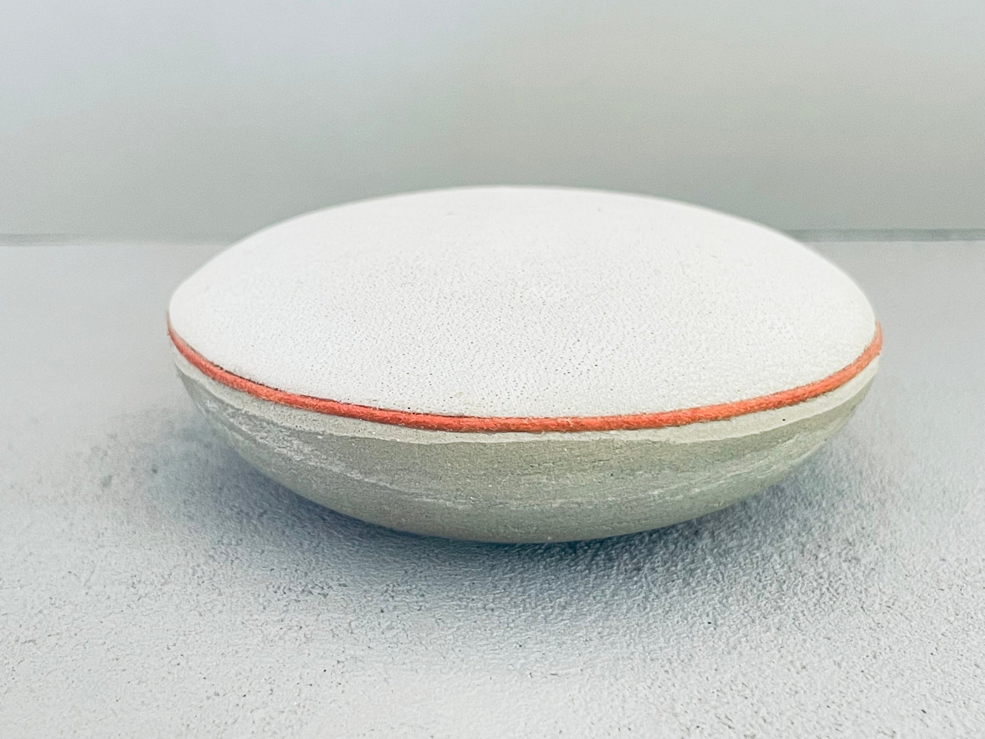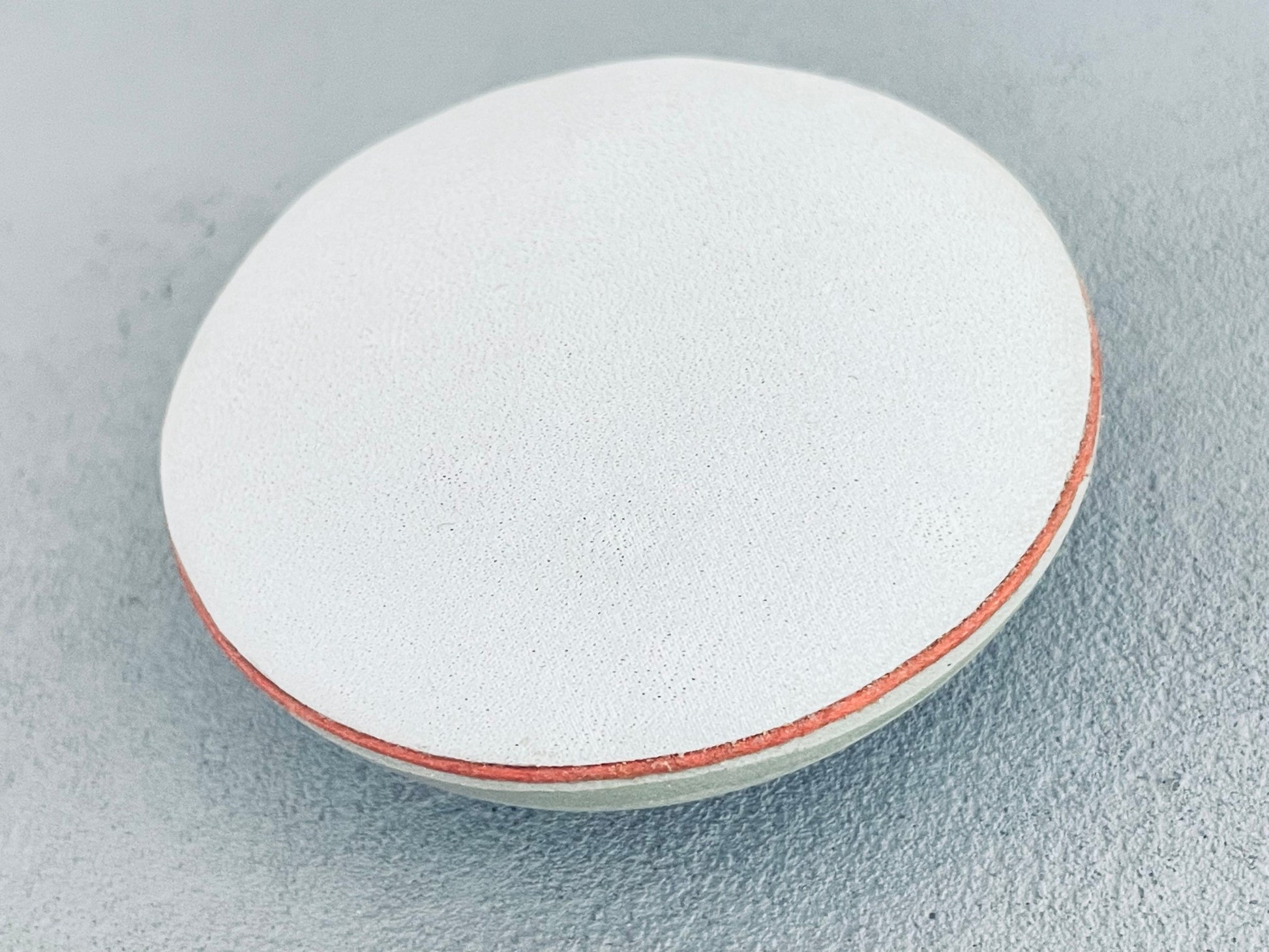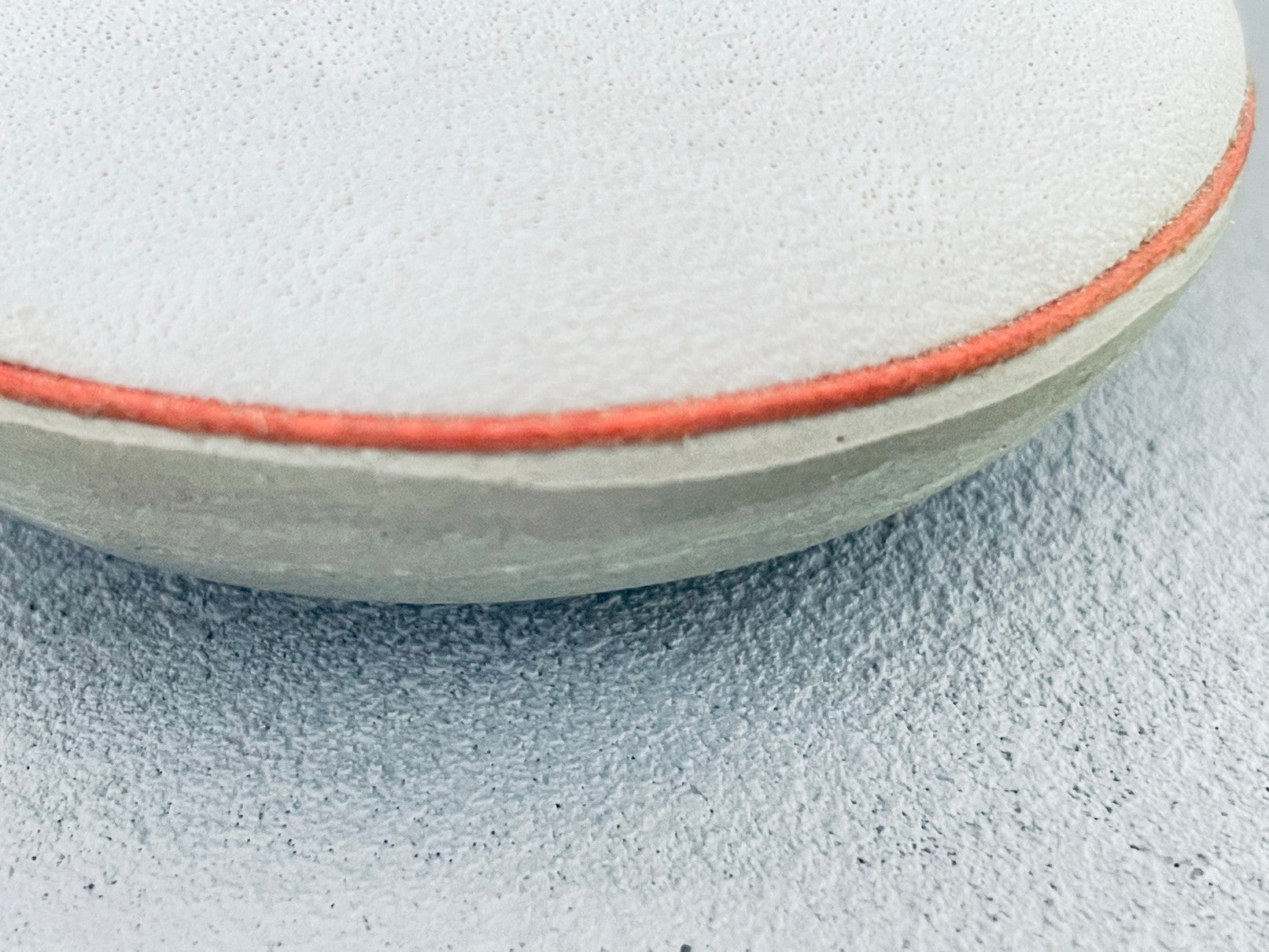 This round concrete ottoman with a gray micro suede fabric cushion top adds a soft and classy touch to an industrial material that can go in any room. Finished with orange accent piping.