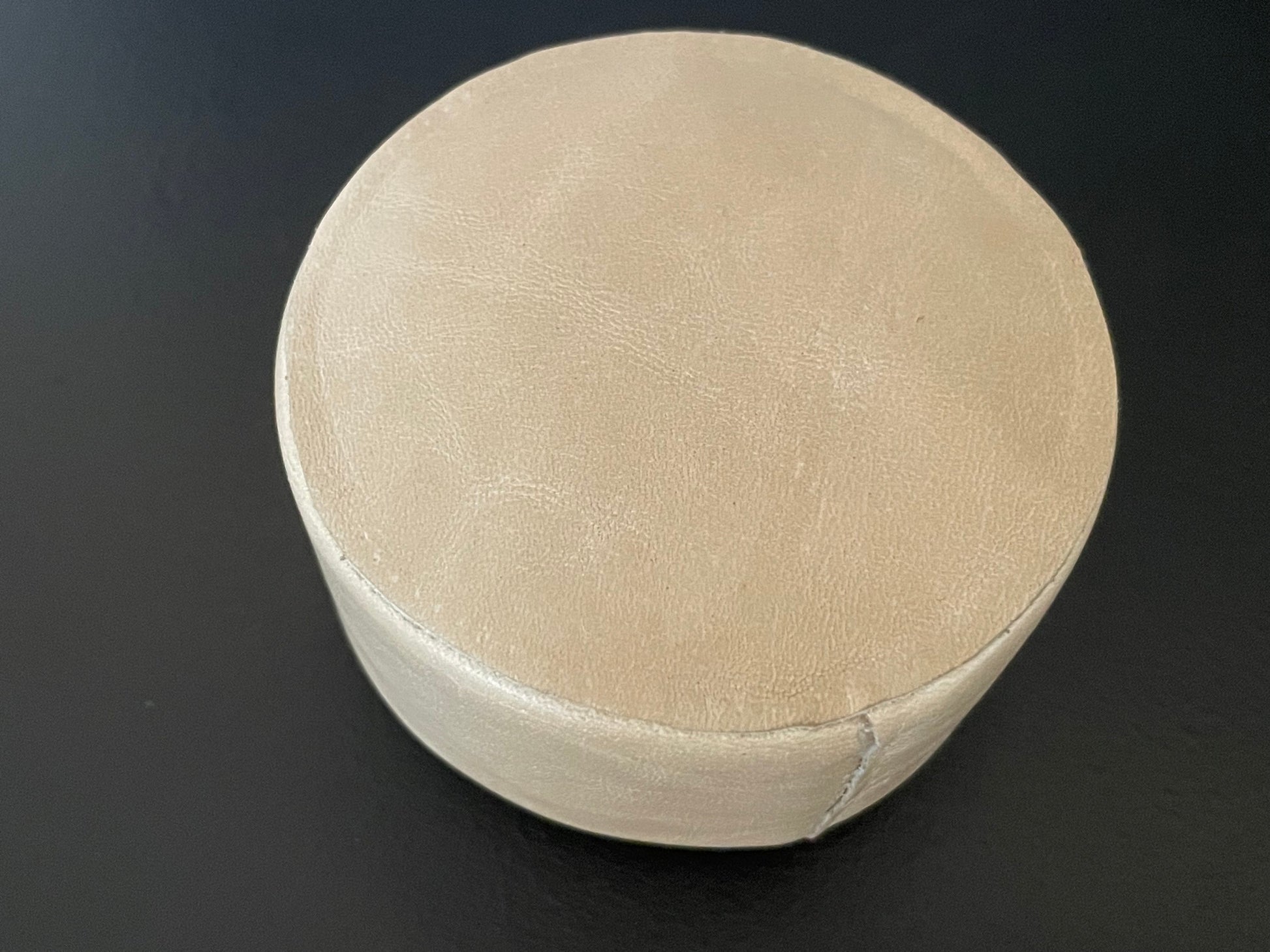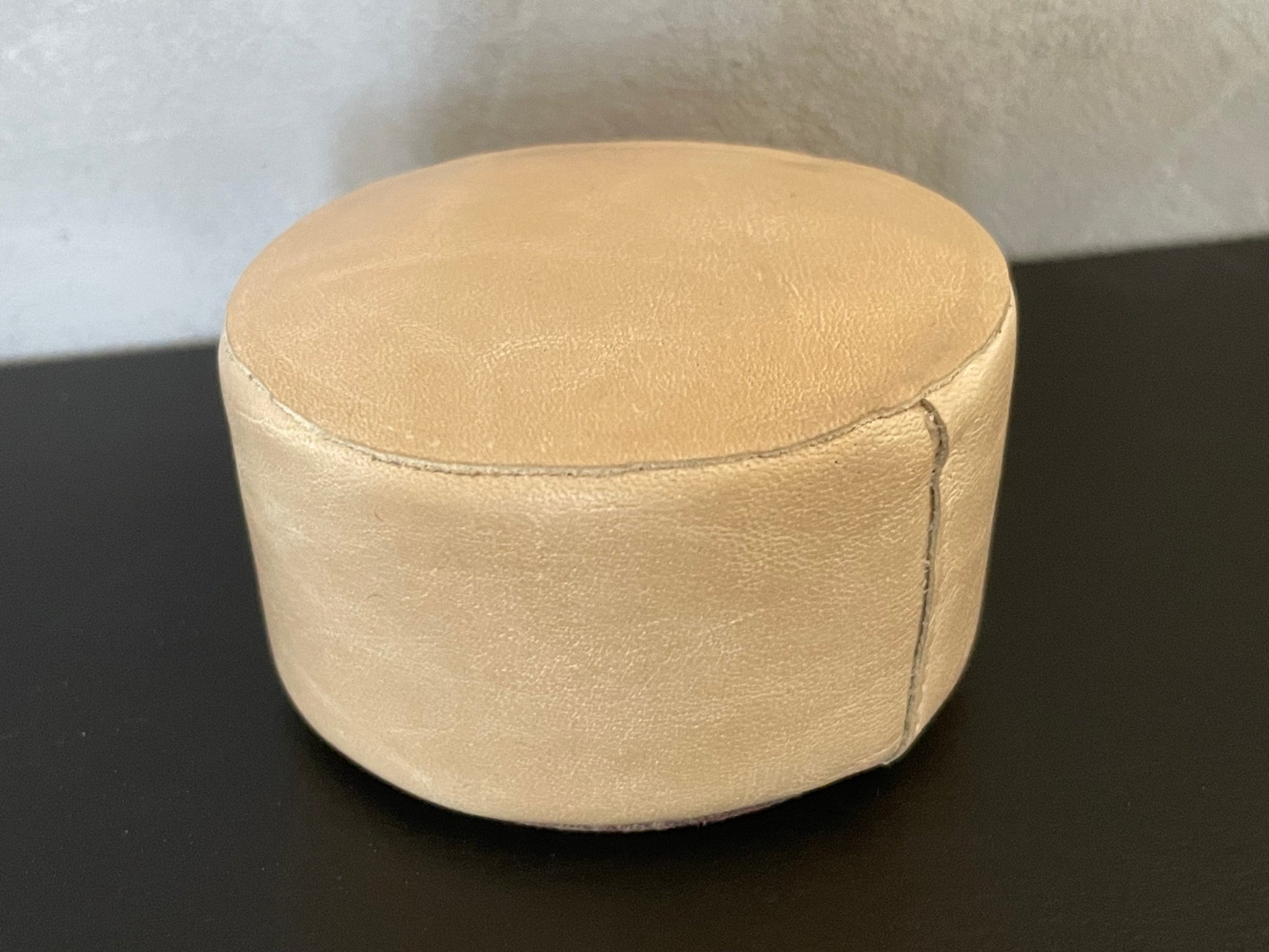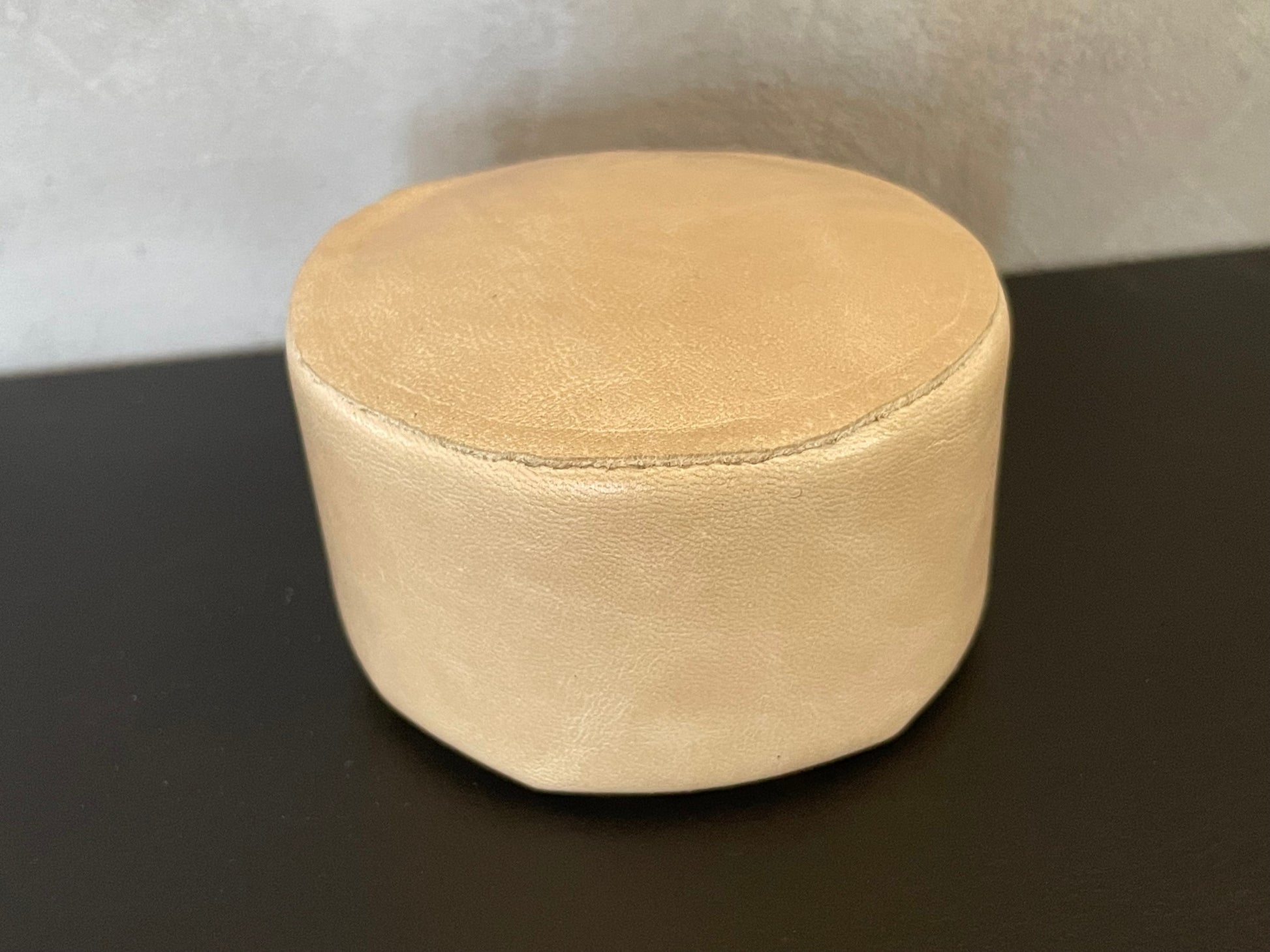 Round Leather Ottoman in Light Taupe