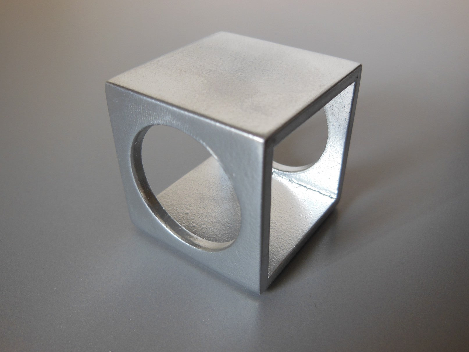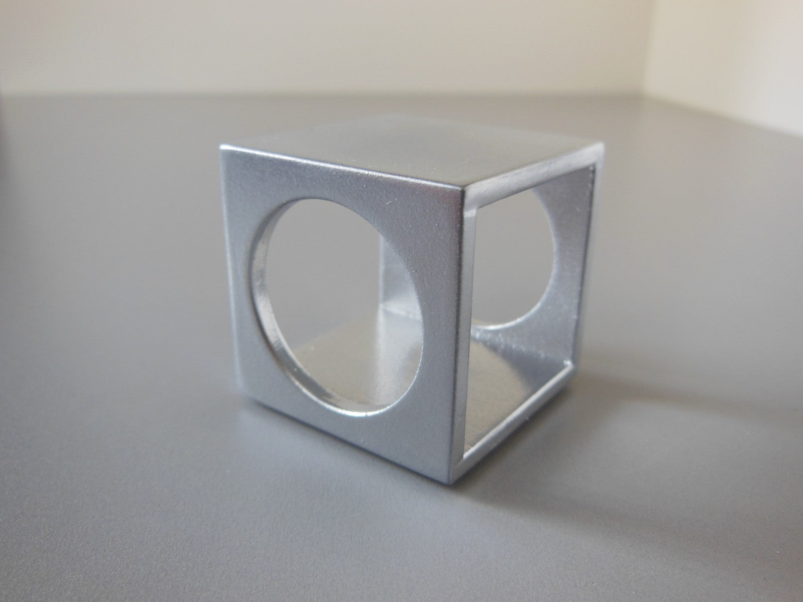 The Spatial Side Table is a great modern design element. Painted in a Silver Metallic finish.