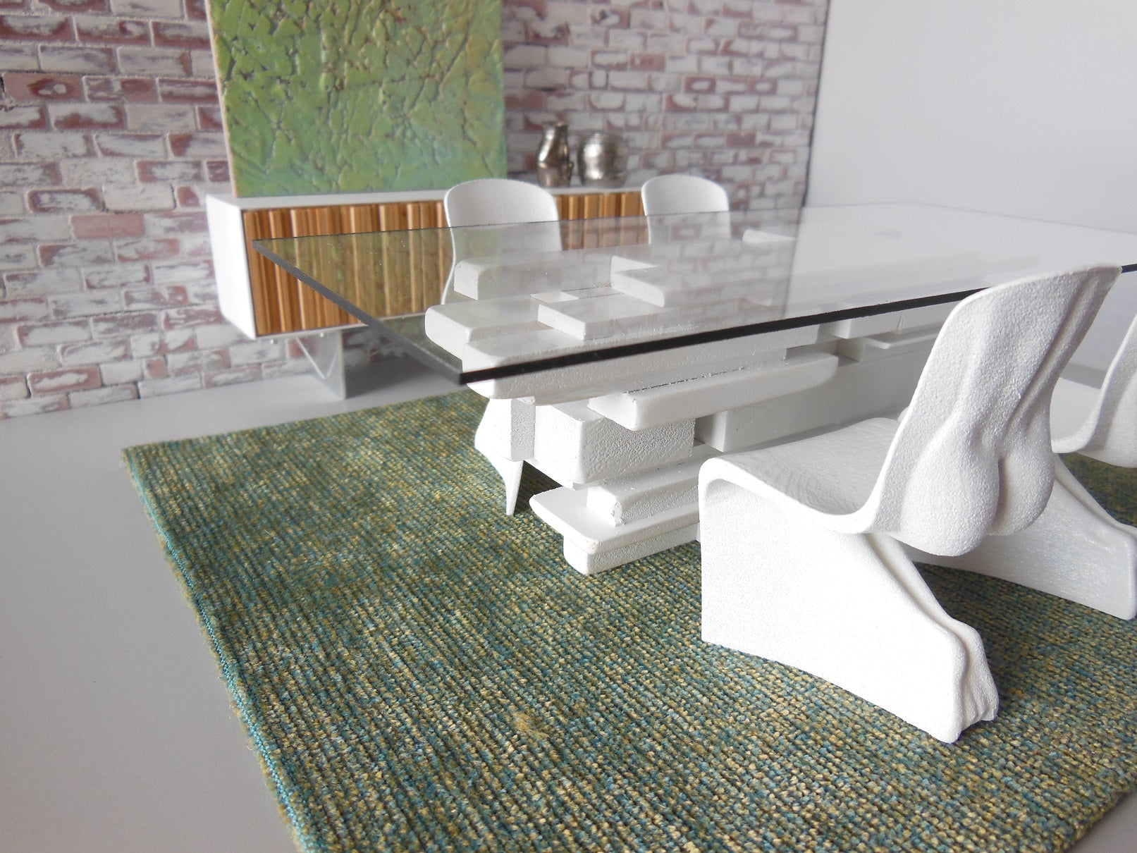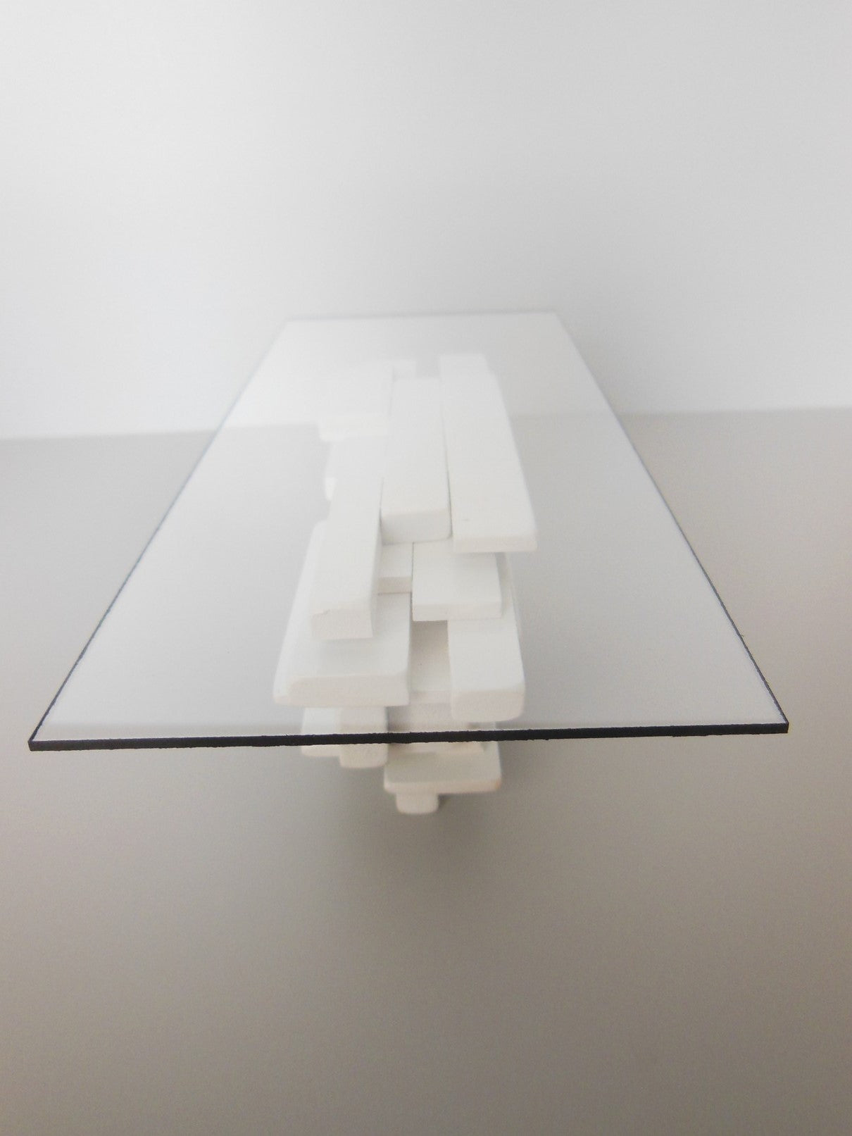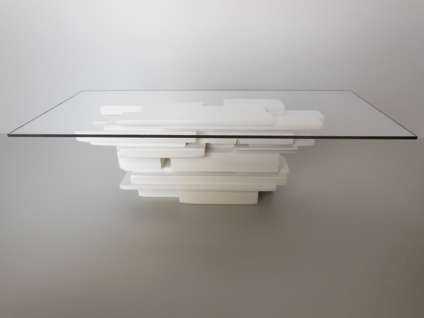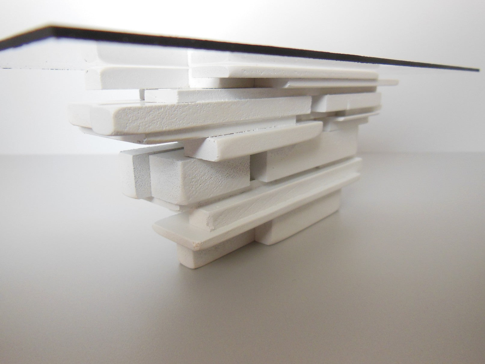 These tables are very versatile and lend a sculptural element to any dining space. The acrylic glass top is attached with epoxy. Each piece will vary in design and is unique in how it is constructed.