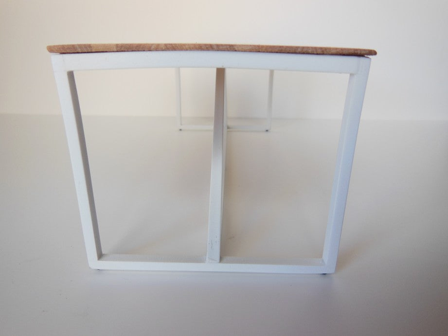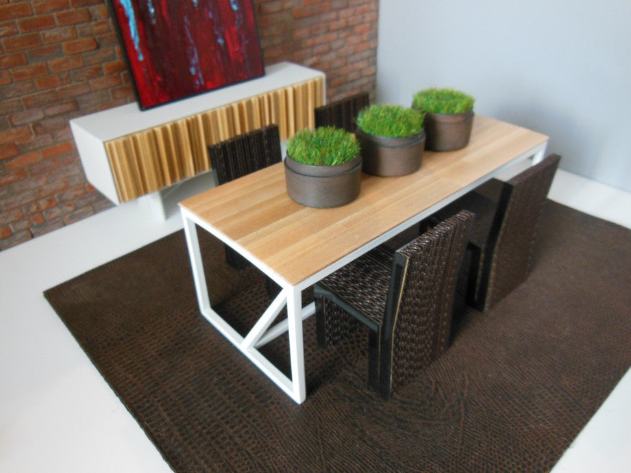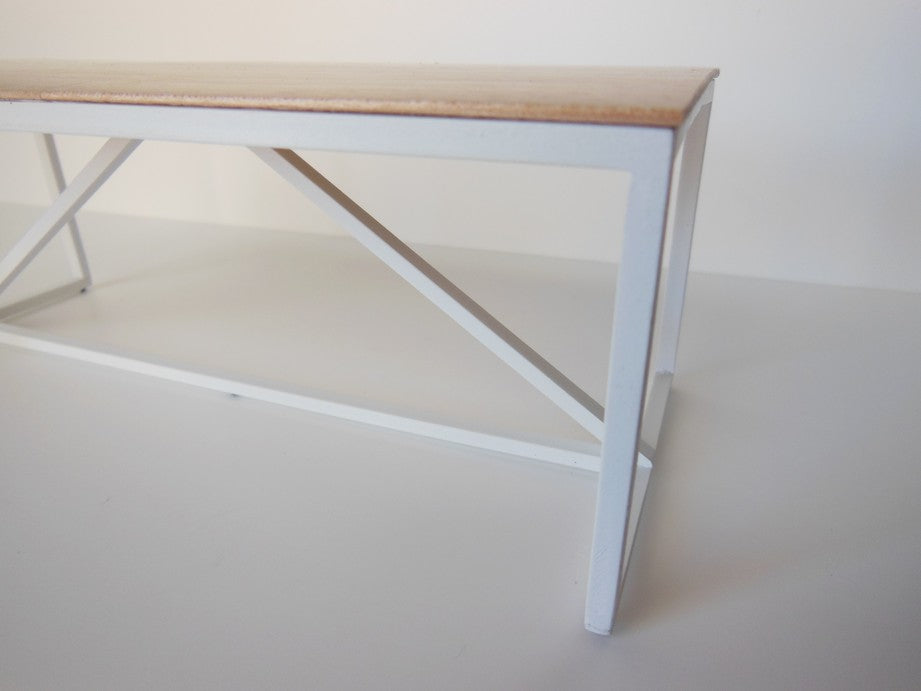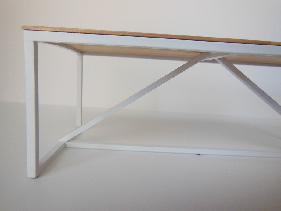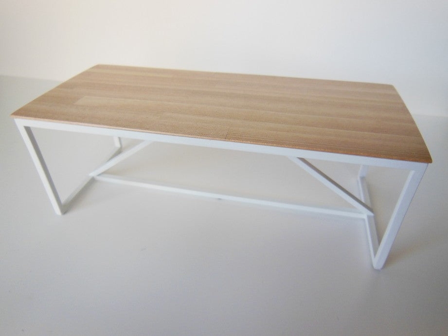 A modernist design based on the full sized table of the same name from BluDot. This table looks great in almost any modern setting. The white frame with Birch top adds a nice clean look to a modernist interior.