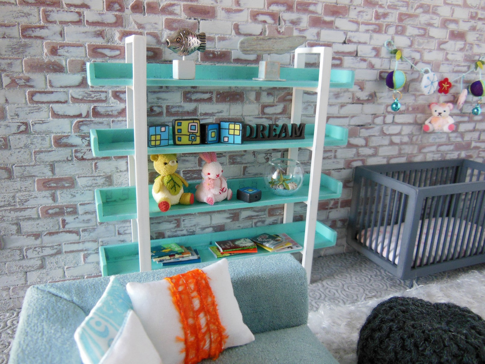 Studio 4 Tier Shelving Unit in Tiffany Blue/White