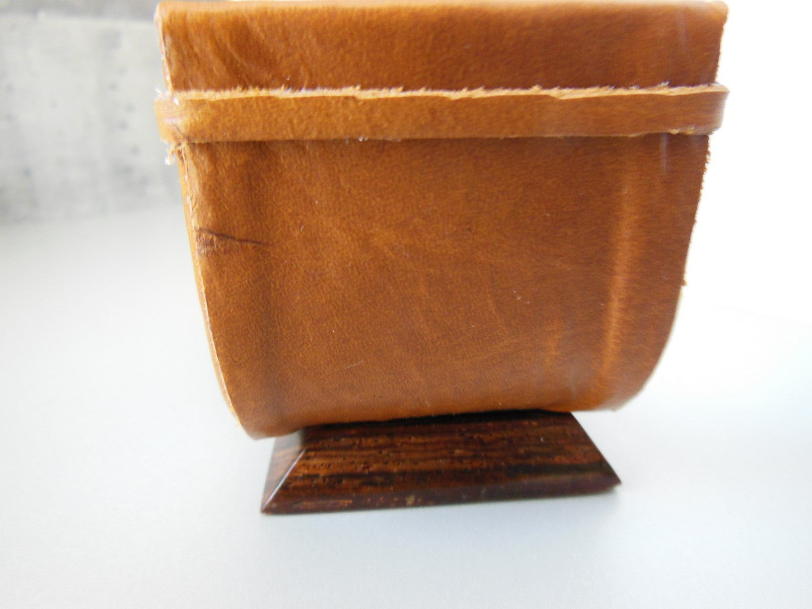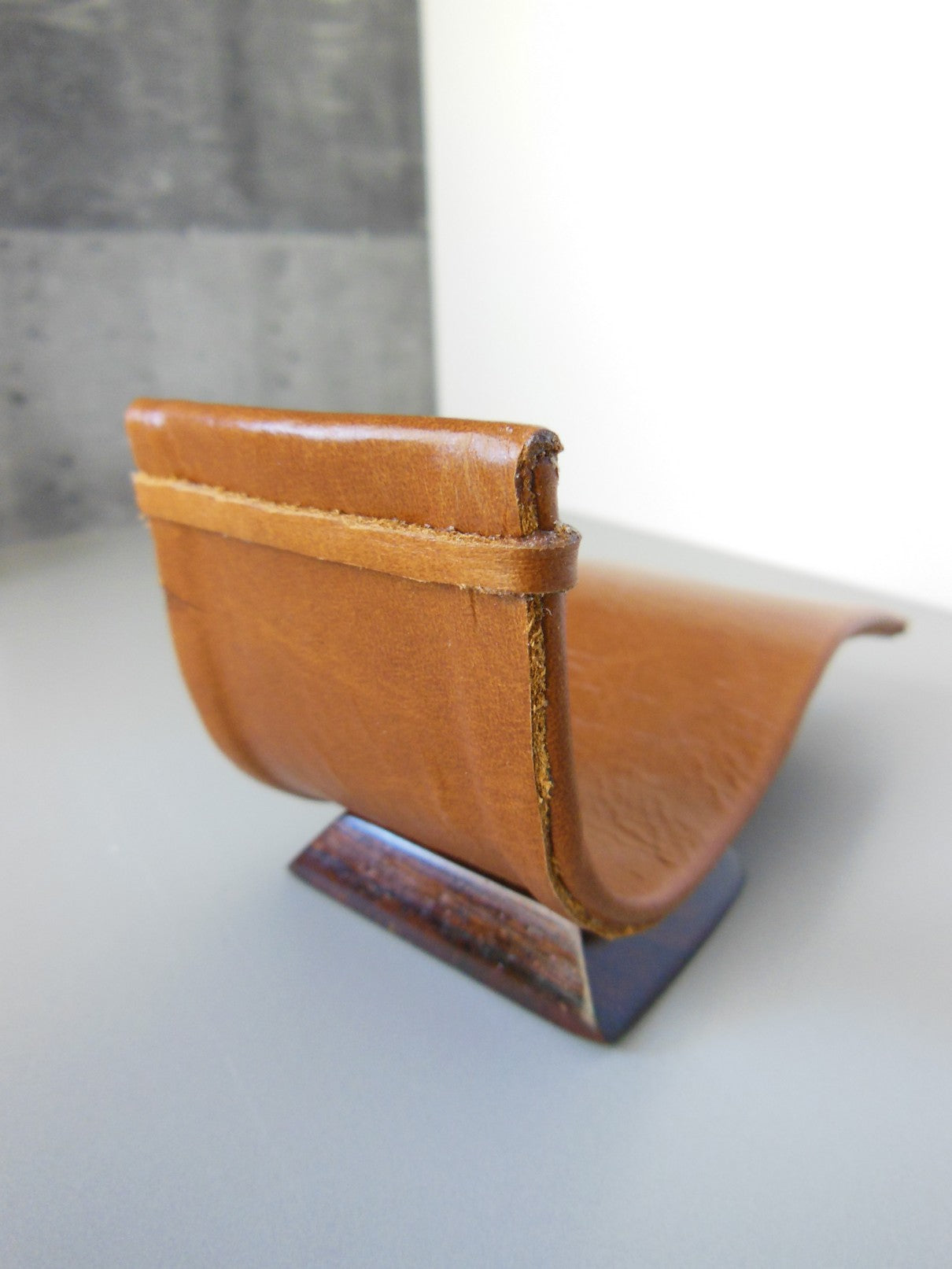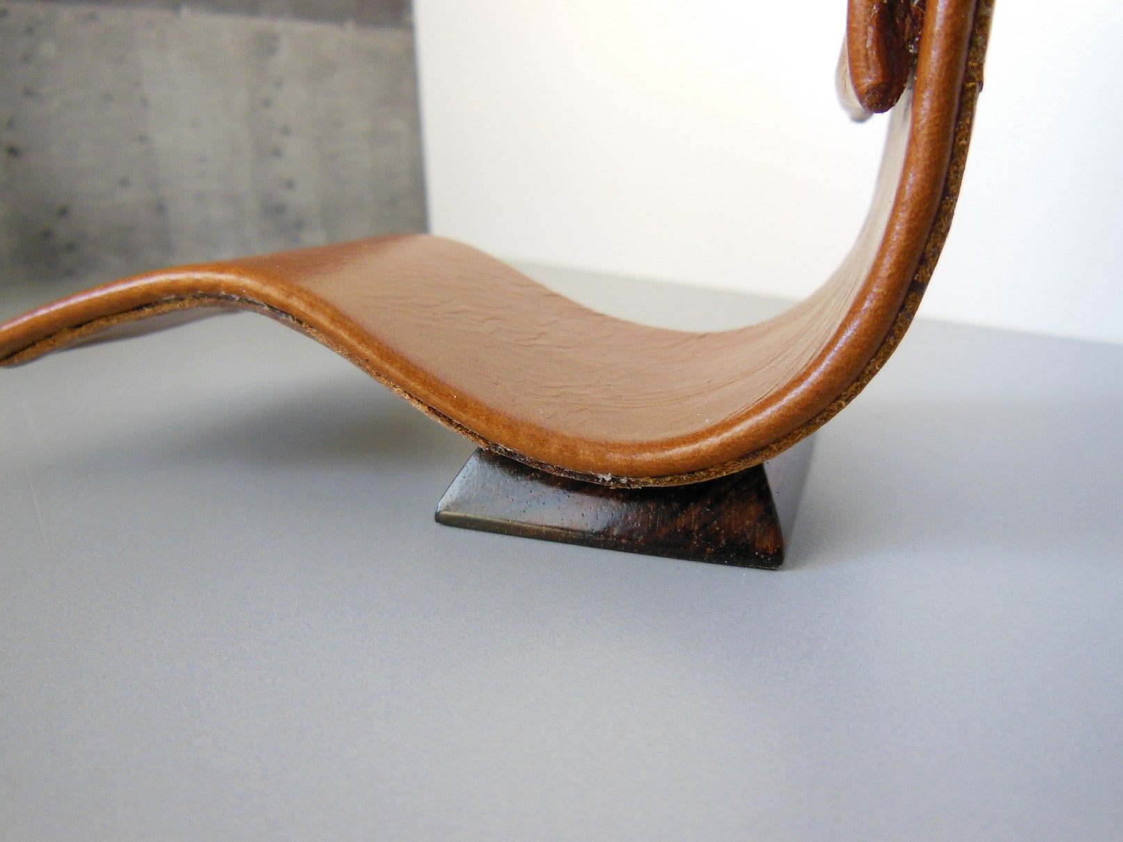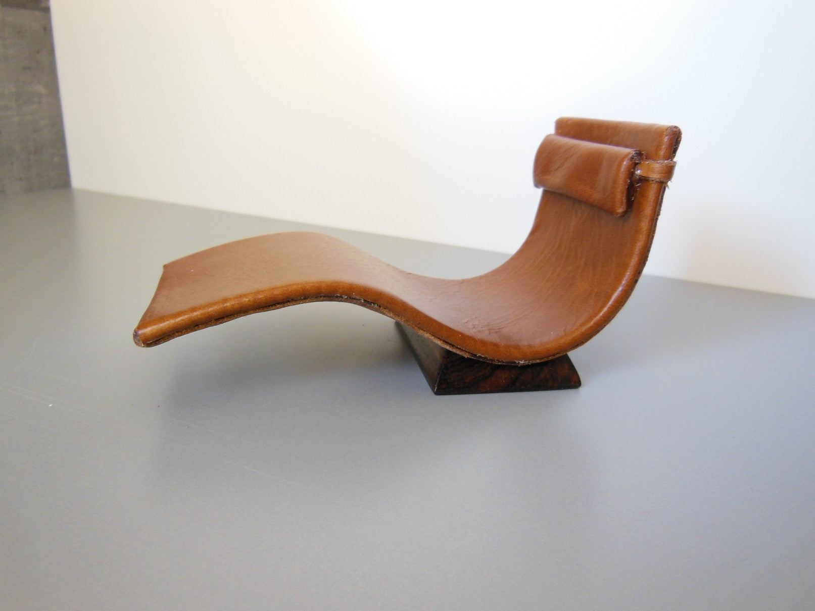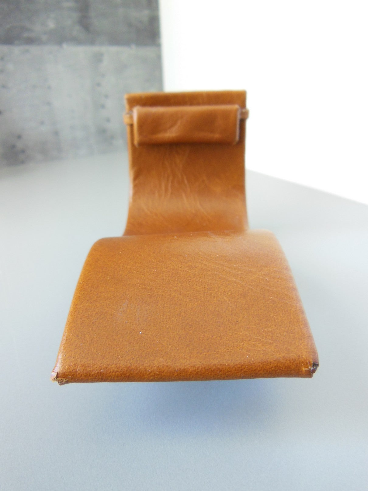Chaise upholstered in a tan leather with a wood base. NOTE: Leather color will vary - inquire if you would like to see a photo of leather before ordering.