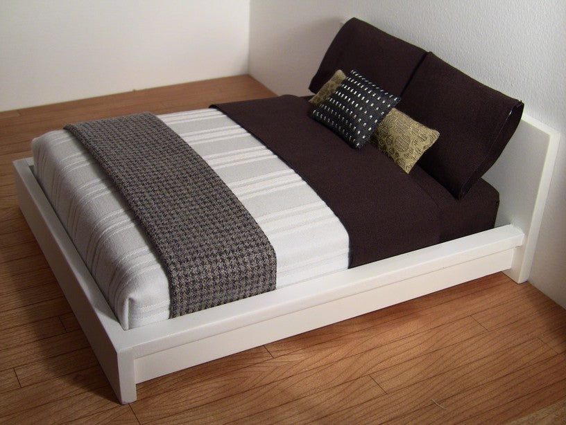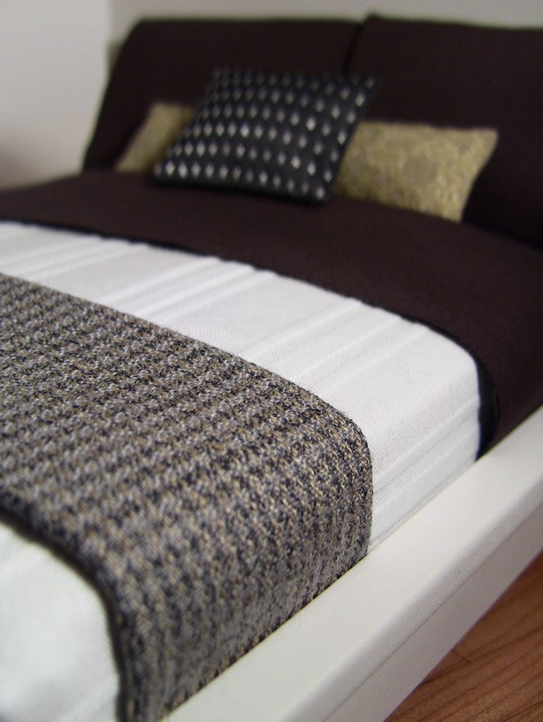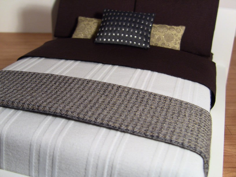 With modern appeal the Uptown Collection includes our white wide band duvet, espresso sheet set, small charcoal silver dash rectangle pillow, gold circle long oblong pillow and houndstooth throw. Mattress, standard pillows and bed frame sold separately.