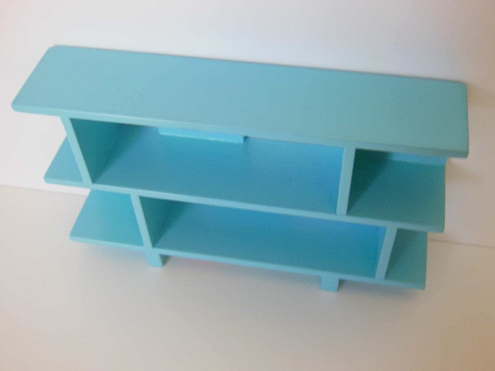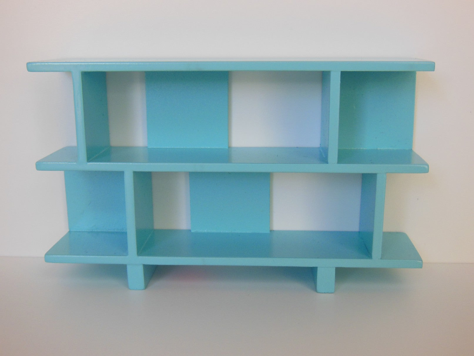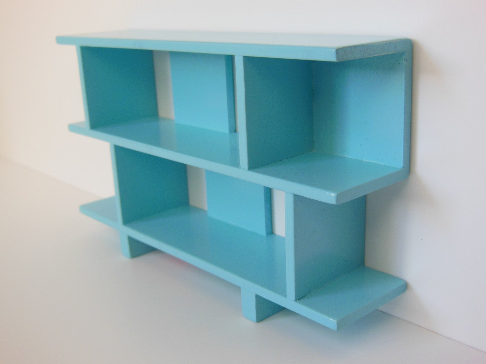 The Vendi 2-tier bookcase finished in bright white is a perfect accent to any room for displaying collections, books, etc. The random block panels create an interesting backdrop to the unit.