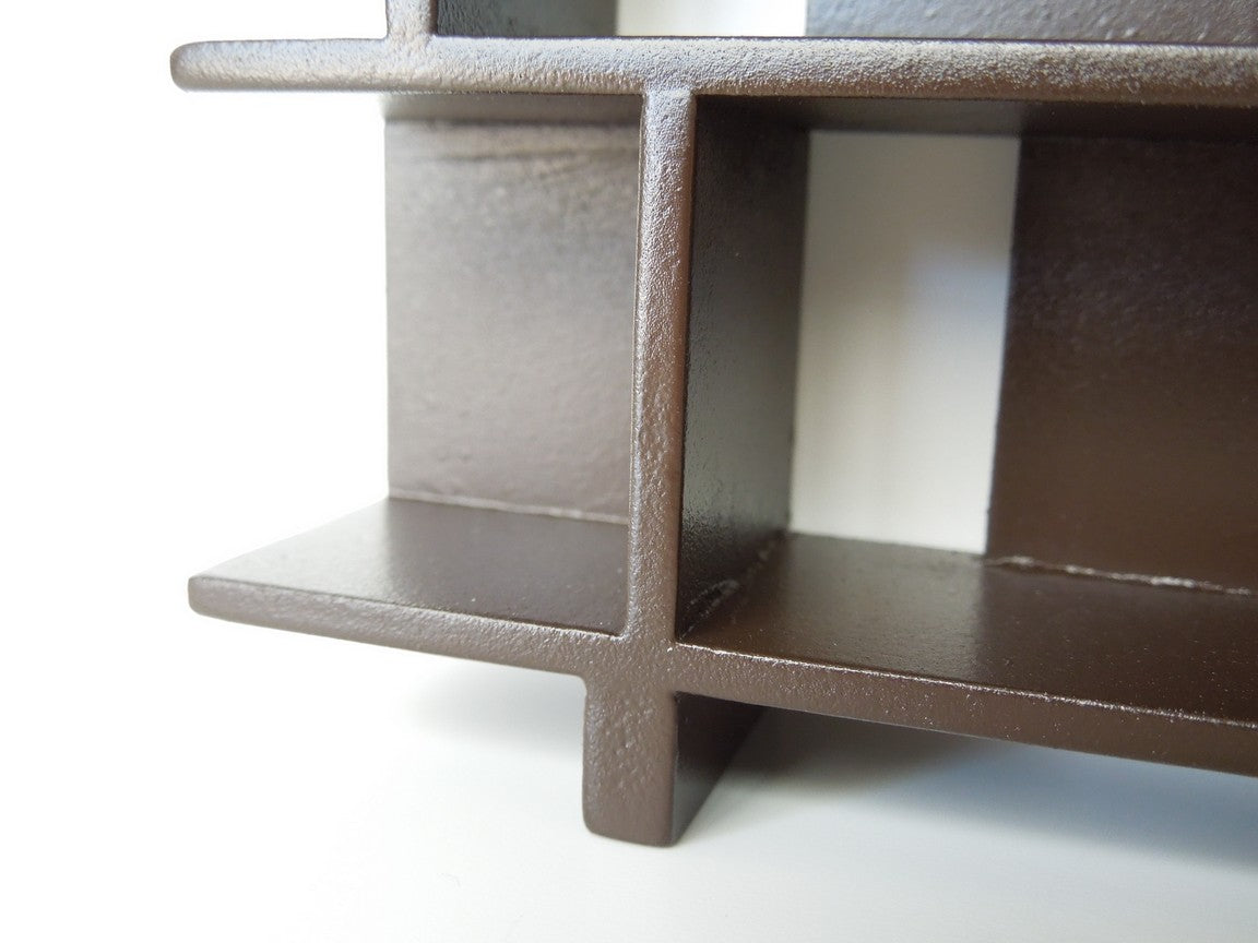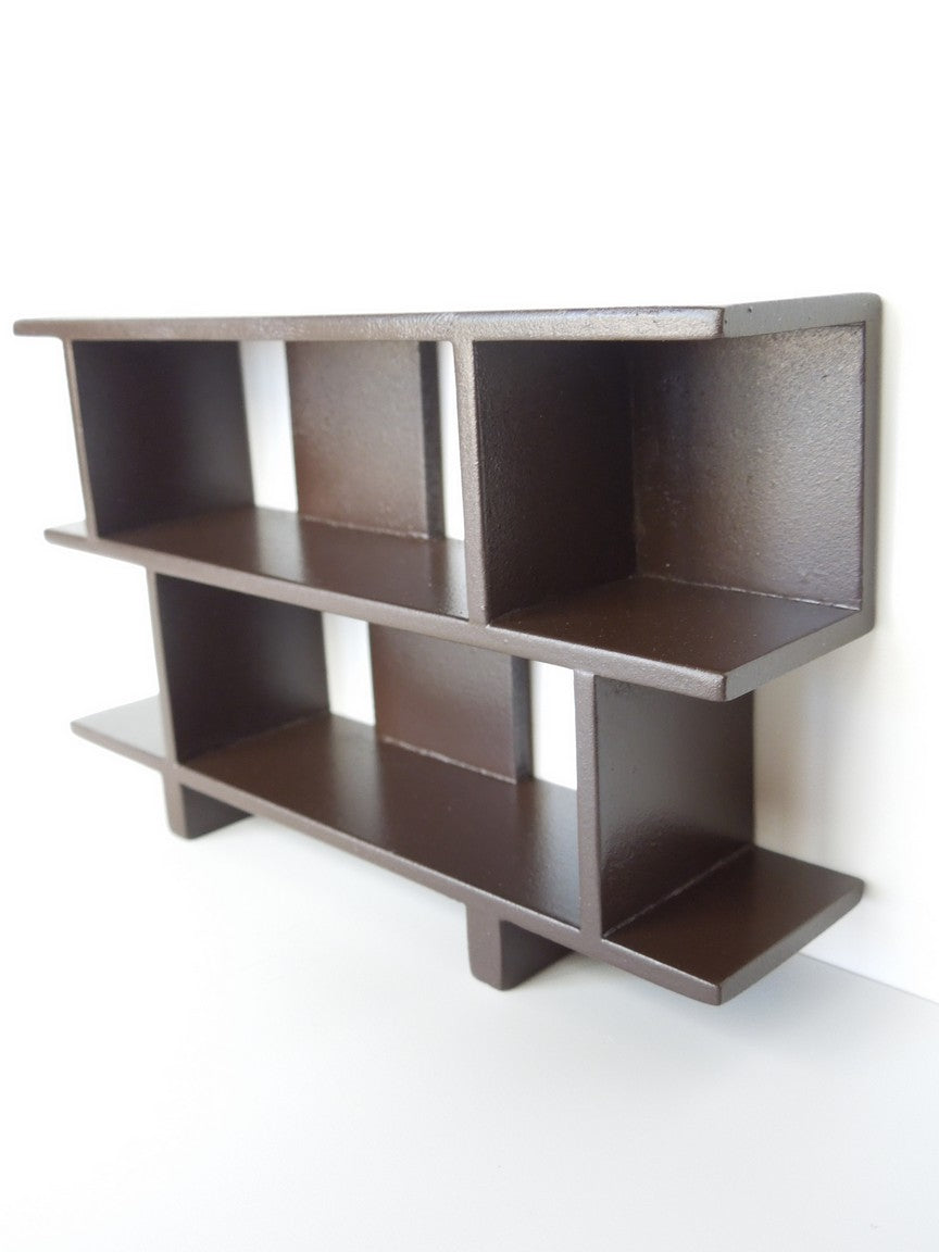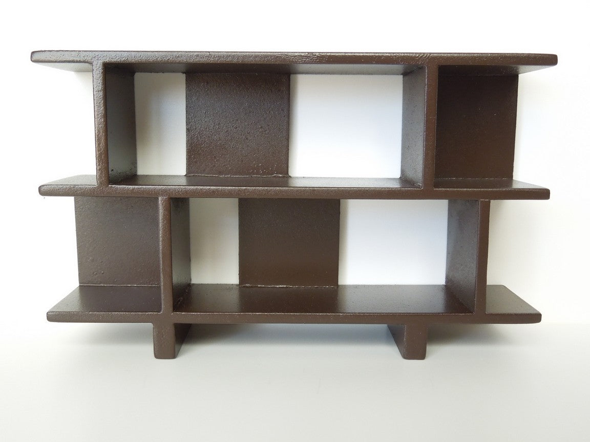 The Vendi 2-tier bookcase finished in espresso brown is a perfect accent to any room for displaying collections, books, etc. The random block panels create an interesting backdrop to the unit.