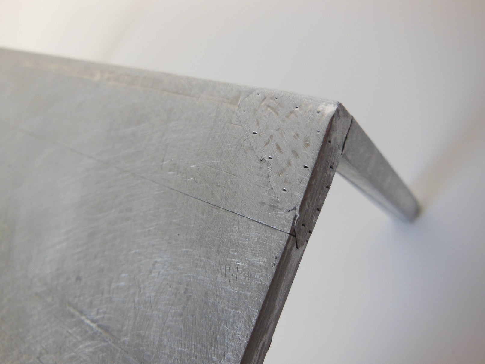 This simple Parsons-style desk adds a bold statement to any office or workspace covered in vintage metal patchwork. NOTE: Each table is unique and pattern and finish will vary with each piece.