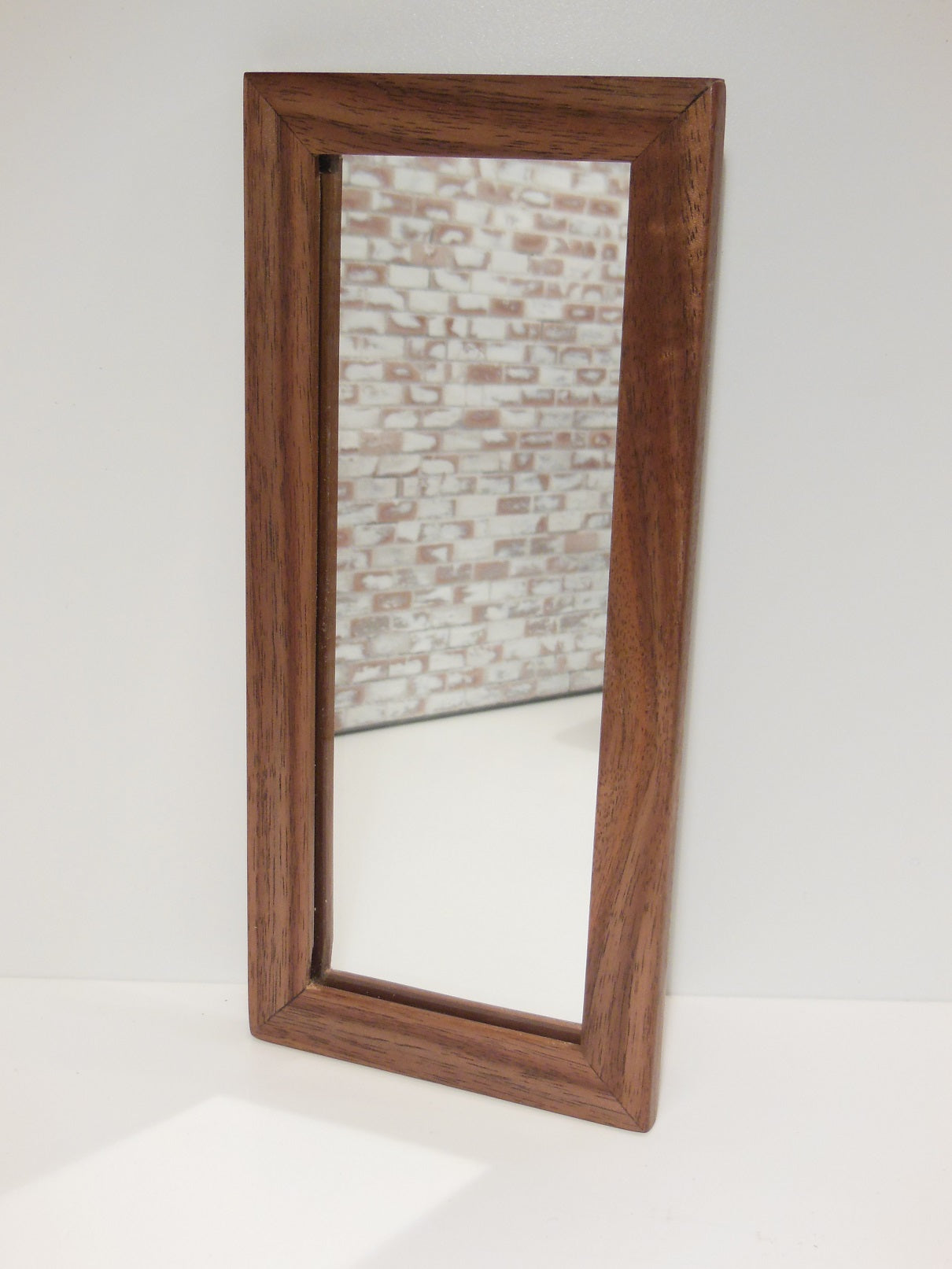 Floor length mirror framed with solid walnut wood.
