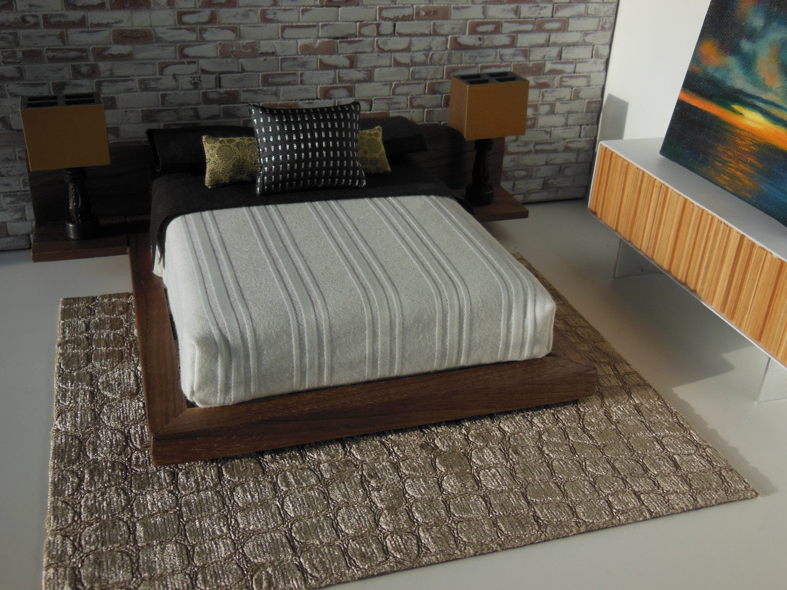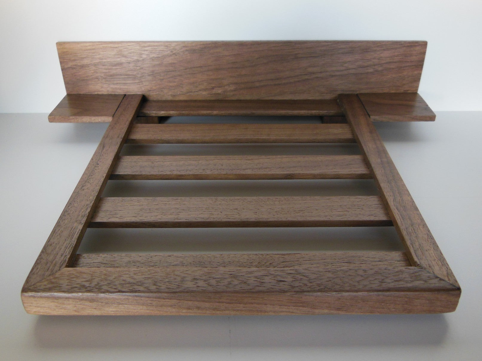 Walnut Platform Queen size bed features solid walnut wood headboard and nightstands NOTE: other sizes such as KING or DOUBLE are available as special order); THIS BED DOES NOT INCLUDE THE MATTRESS AND BEDDING. MIMOBE Compatible - see our Bedding category for mattress, bedding and accessories.