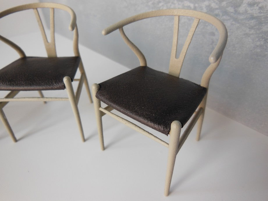 PRD Miniatures is proud to offer a perfectly scaled miniature replica of the iconic Wishbone Chair by world renowned designer, Hans Wegner. The Wishbone Chair is very versatile and able to fit with interiors from classic to modern. Adding a fresh twist to the classic design, PRD Miniatures offers a multitude of color combinations. Our chairs come with either a painted or an upholstered seat.