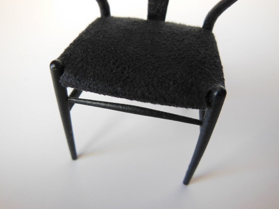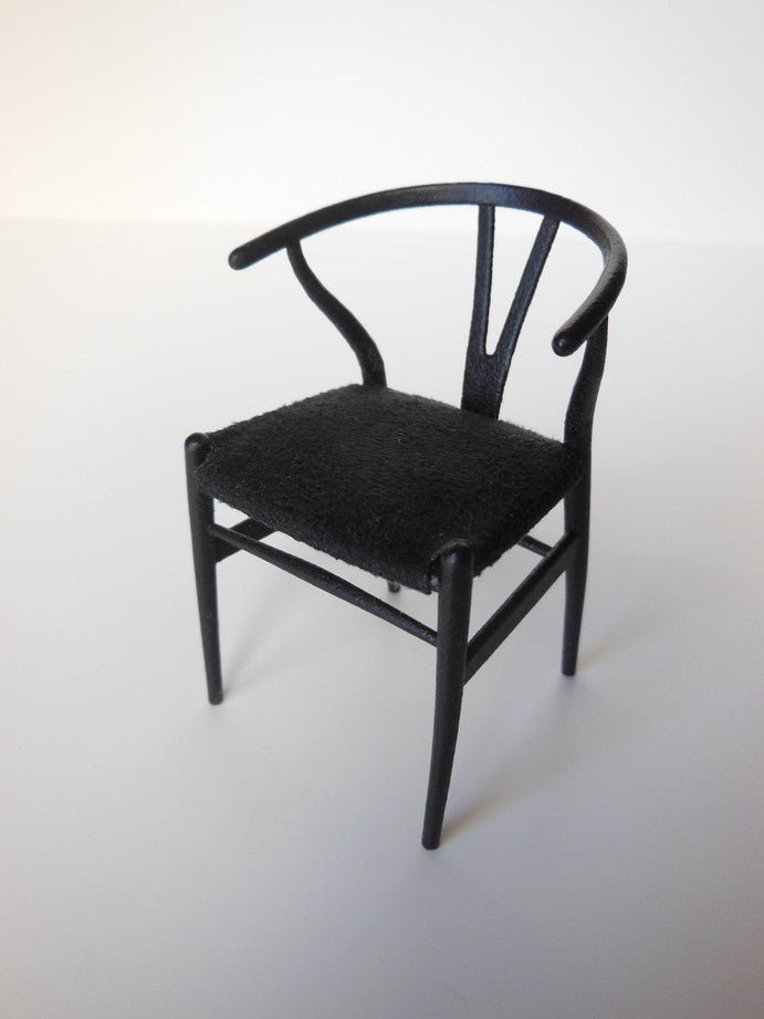 PRD Miniatures is proud to offer a perfectly scaled miniature replica of the iconic Wishbone Chair by world renowned designer, Hans Wegner. The Wishbone Chair is very versatile and able to fit with interiors from classic to modern. Adding a fresh twist to the classic design, PRD Miniatures offers a multitude of color combinations. Our chairs come with either a painted or an upholstered seat.