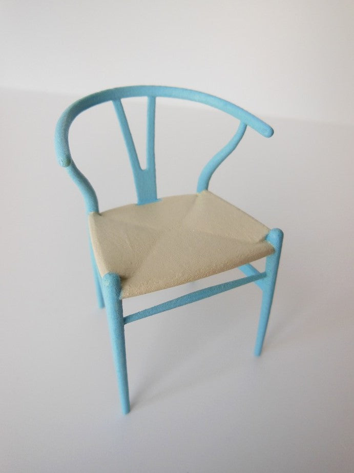 PRD Miniatures is proud to offer a perfectly scaled miniature replica of the iconic Wishbone Chair by world renowned designer, Hans Wegner. The Wishbone Chair is very versatile and able to fit with interiors from classic to modern. Adding a fresh twist to the classic design, PRD Miniatures offers a multitude of color combinations. Our chairs come with either a painted or an upholstered seat.