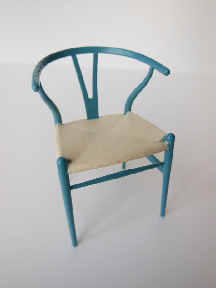 PRD Miniatures is proud to offer a perfectly scaled miniature replica of the iconic Wishbone Chair by world renowned designer, Hans Wegner. The Wishbone Chair is very versatile and able to fit with interiors from classic to modern. Adding a fresh twist to the classic design, PRD Miniatures offers a multitude of color combinations. Our chairs come with either a painted or an upholstered seat.