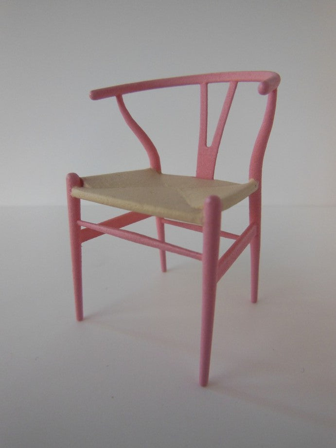 PRD Miniatures is proud to offer a perfectly scaled miniature replica of the iconic Wishbone Chair by world renowned designer, Hans Wegner. The Wishbone Chair is very versatile and able to fit with interiors from classic to modern. Adding a fresh twist to the classic design, PRD Miniatures offers a multitude of color combinations. Our chairs come with either a painted or an upholstered seat.