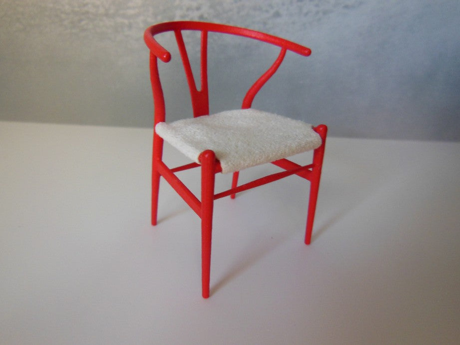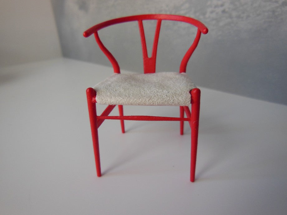 PRD Miniatures is proud to offer a perfectly scaled miniature replica of the iconic Wishbone Chair by world renowned designer, Hans Wegner. The Wishbone Chair is very versatile and able to fit with interiors from classic to modern. Adding a fresh twist to the classic design, PRD Miniatures offers a multitude of color combinations. Our chairs come with either a painted or an upholstered seat.