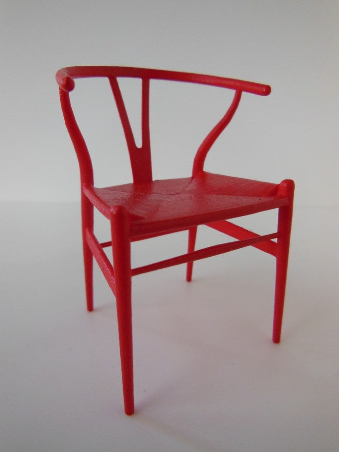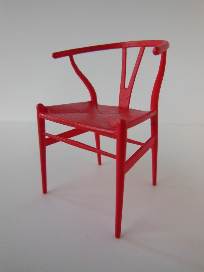 PRD Miniatures is proud to offer a perfectly scaled miniature replica of the iconic Wishbone Chair by world renowned designer, Hans Wegner. The Wishbone Chair is very versatile and able to fit with interiors from classic to modern. Adding a fresh twist to the classic design, PRD Miniatures offers a multitude of color combinations. Our chairs come with either a painted or an upholstered seat.